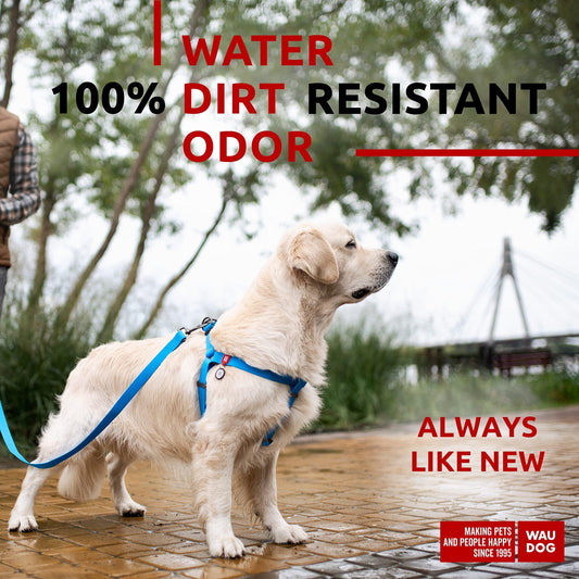 WAUDOG Waterproof Dog Harness Adjustable Dog Harness for Large Dogs Small and Medium Dogs Heavy Duty Dog Harness with Durable Metal Clasp and QR Dog Tag Boy & Girl Dog Harness Blue (24 35In)